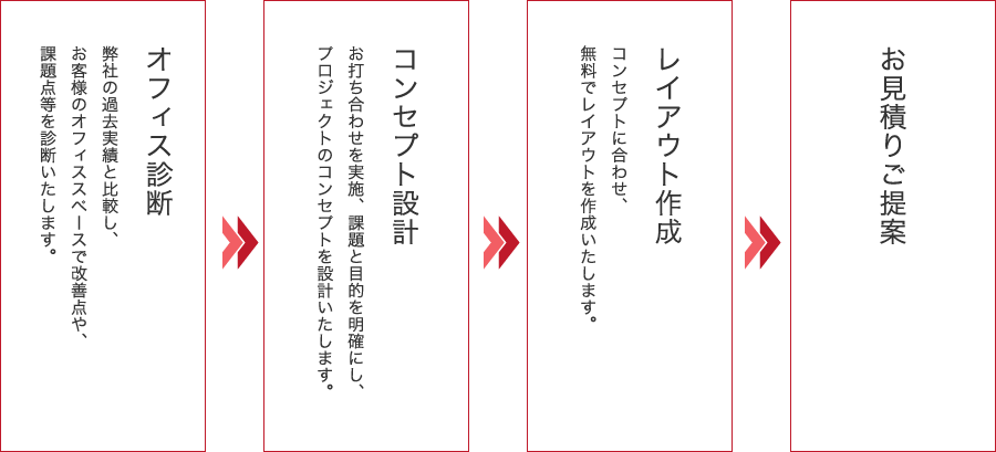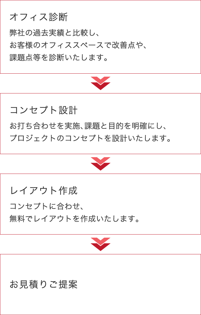 お見積・ご提案まずはオフィスに関するお悩みをお聞かせ頂き、現状のレイアウト図をお見せ頂きます。